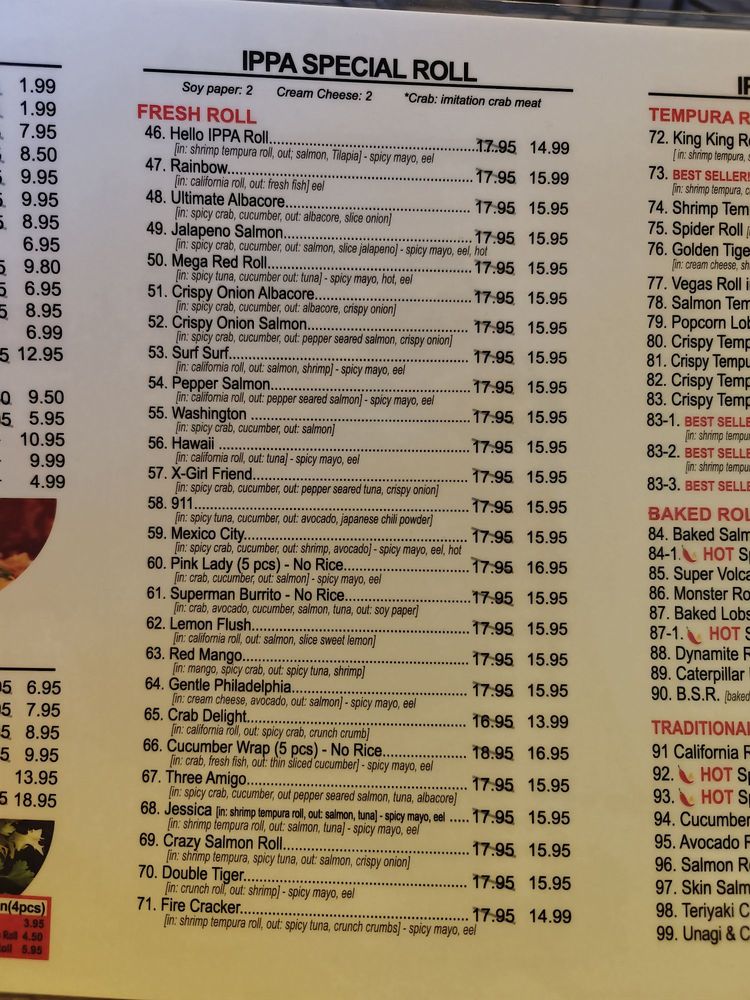 IPPA Sushi Ramen Menu